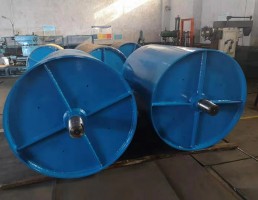 傳動滾筒鋼接盤與筒體用V型焊接坡口焊接,重型滾筒的接盤由高強度球鐵鑄鋼制成,接盤軸套等焊接坡口均為機加工,焊接后做消除應(yīng)力處理并進行焊縫進行100℅無損傷和25℅X射線拍片檢查,組裝后進行靜平衡試驗,精度達GB/T9239.1-2006中G40標準。