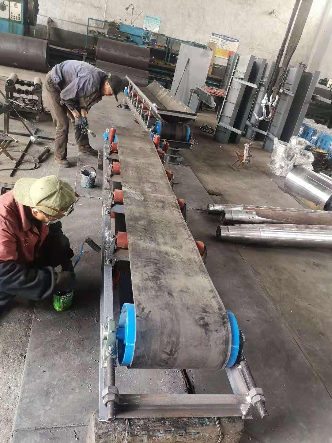 ⑴加大拉緊力(初張力)。膠帶輸送機在運行中,膠帶要伸長,造成牽引力下降,所以要根據情況,利用拉緊裝置適當地將膠帶拉緊,加大膠帶張力,以提高牽引力。